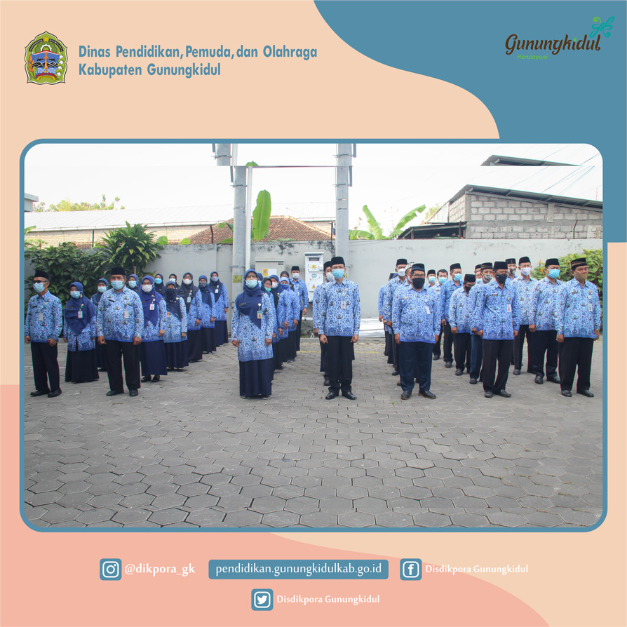 Kegiatan diawali dengan menyanyikan lagu Indonesia Raya tiga stanza. Bertindak sebagai pemimpin apel Edar Santoso, S.Sos. selaku Kepala Subbagian Umum dan Drs. Sudya Marsita, M.M. selaku Sekretaris Dinas Pendidikan, Pemuda, dan Olahraga Kabupaten Gunungkidul bertindak sebagai pembina apel.