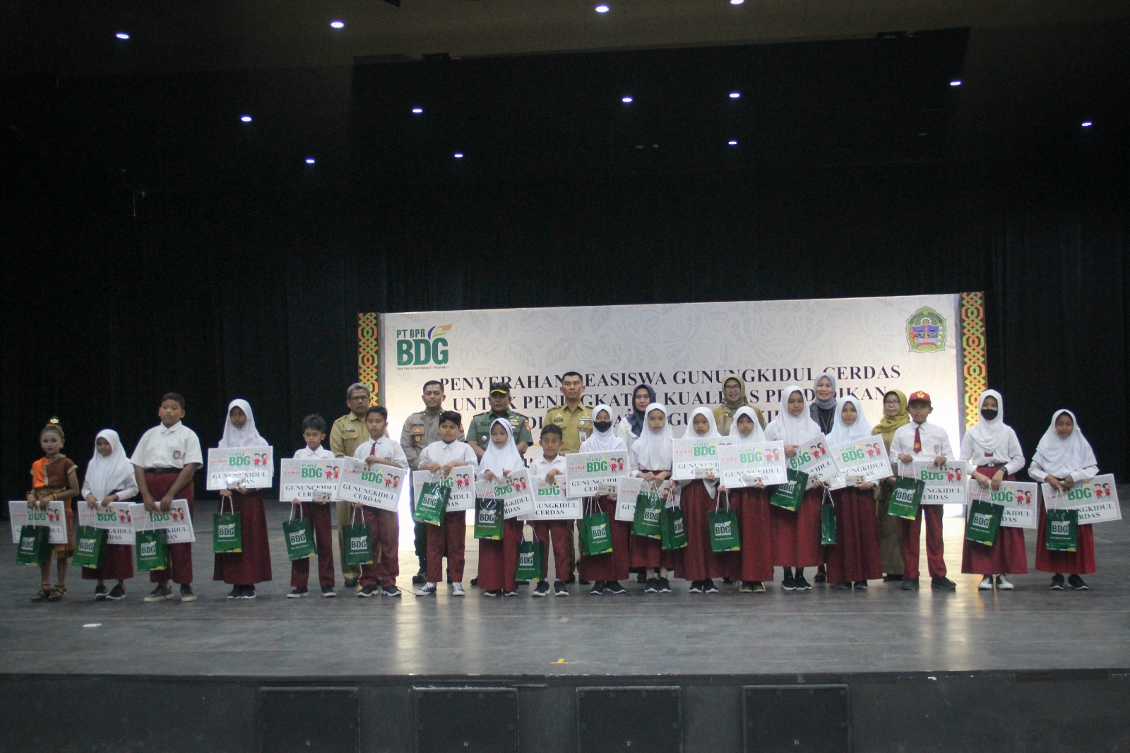 GUNUNGKIDUL - Sebanyak 800 siswa Sekolah Dasar di Gunungkidul menerima Beasiswa Gunungkidul Cerdas dengan besaran per tahun sejumlah Rp. 500 ribu rupiah, Penyerahan beasiswa diserahkan langsung oleh Bupati Gunungkidul H. Sunaryanta kepada perwakilan, dengan penyaluran dana melalui PT BPR BDG GK.